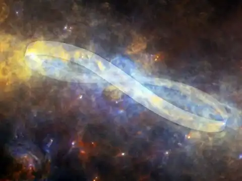 Там же, рядом с центром Млечного пути, расположена космическая "спираль ДНК" - скопление, словно бы сотканное из переплетающихся нитей. По словам ученых из Калифорнийского университета, сделавших эту находку, скопление похоже на двойную спираль ДНК.