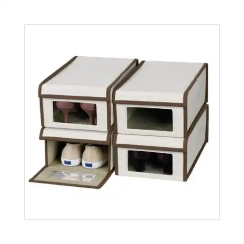 Вырежьте небольшие окошки в коробках с обувью и заклейте их с двух сторон прозрачным скотчем или же приклейте на коробки заранее распечатанные фотографии обуви, находящейся внутри. Это значительно облегчит поиски нужной пары обуви в будущем.