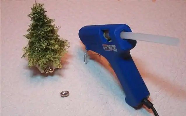 6. Верхушку елки украшаем бусинкой, обязательно посадив ее на клей. Украшаем бусинками «лапы» нашей елочки.