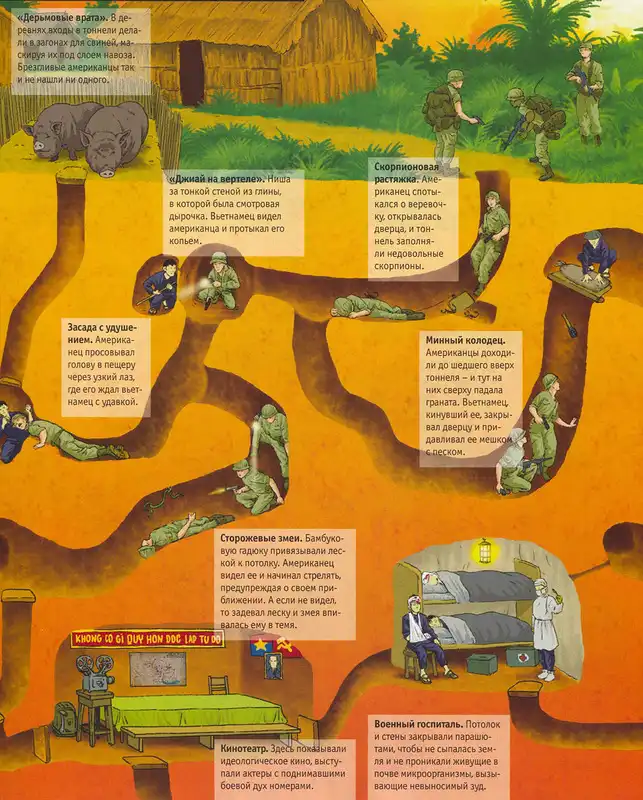 Например, подземные ходы в Кути (Вьетнам) использовались в качестве базы вьетнамской армии (Вьетконг). Система туннелей охватывает почти всё пространство района Кути, простирается на более чем 200 км и состоит из трех уровней глубиной от 8 до 12 метров.