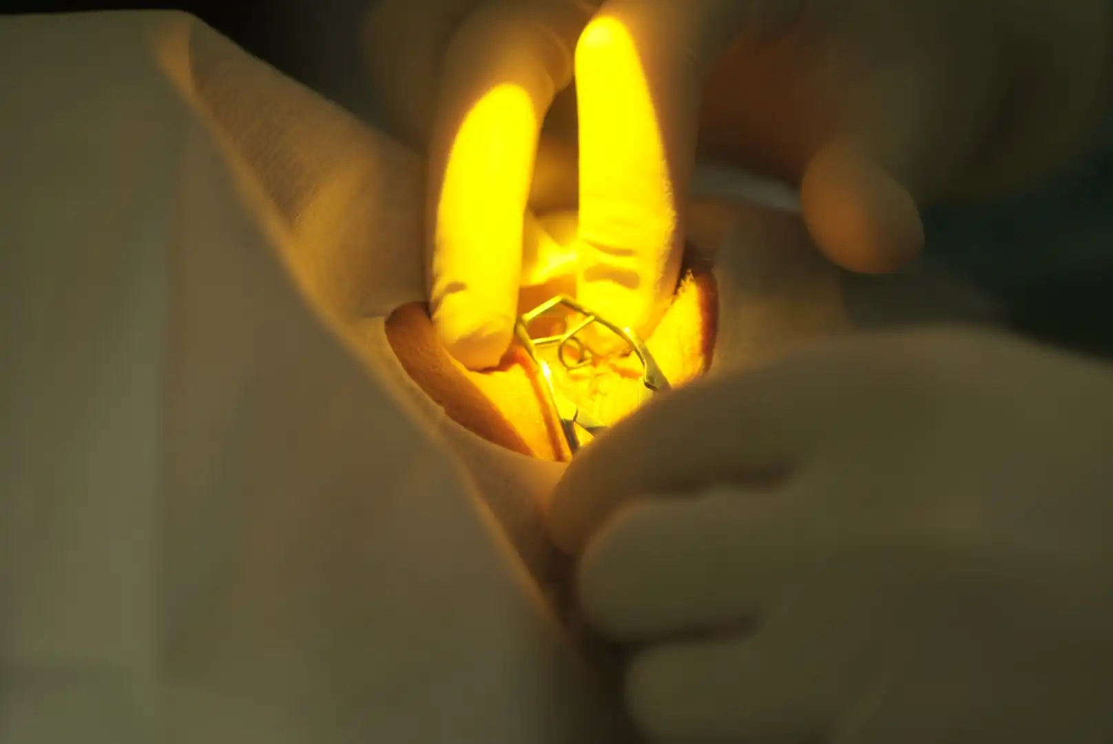 Сейчас практически все операции проводятся только под местной анестезией. А чтобы пациент не смог сомкнуть глаз во время операции, вставляется векорасширитель - специальная распорка для глаза.