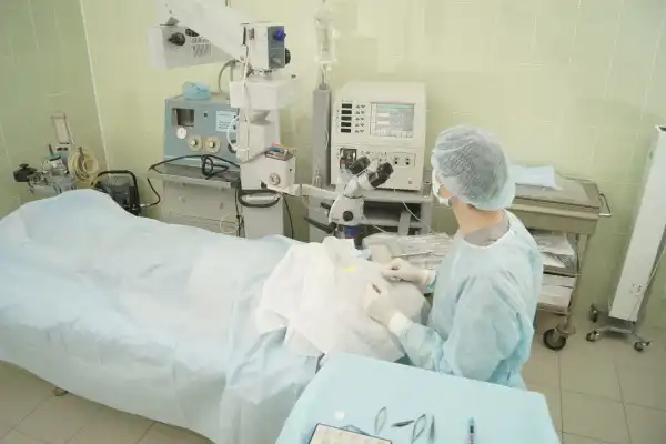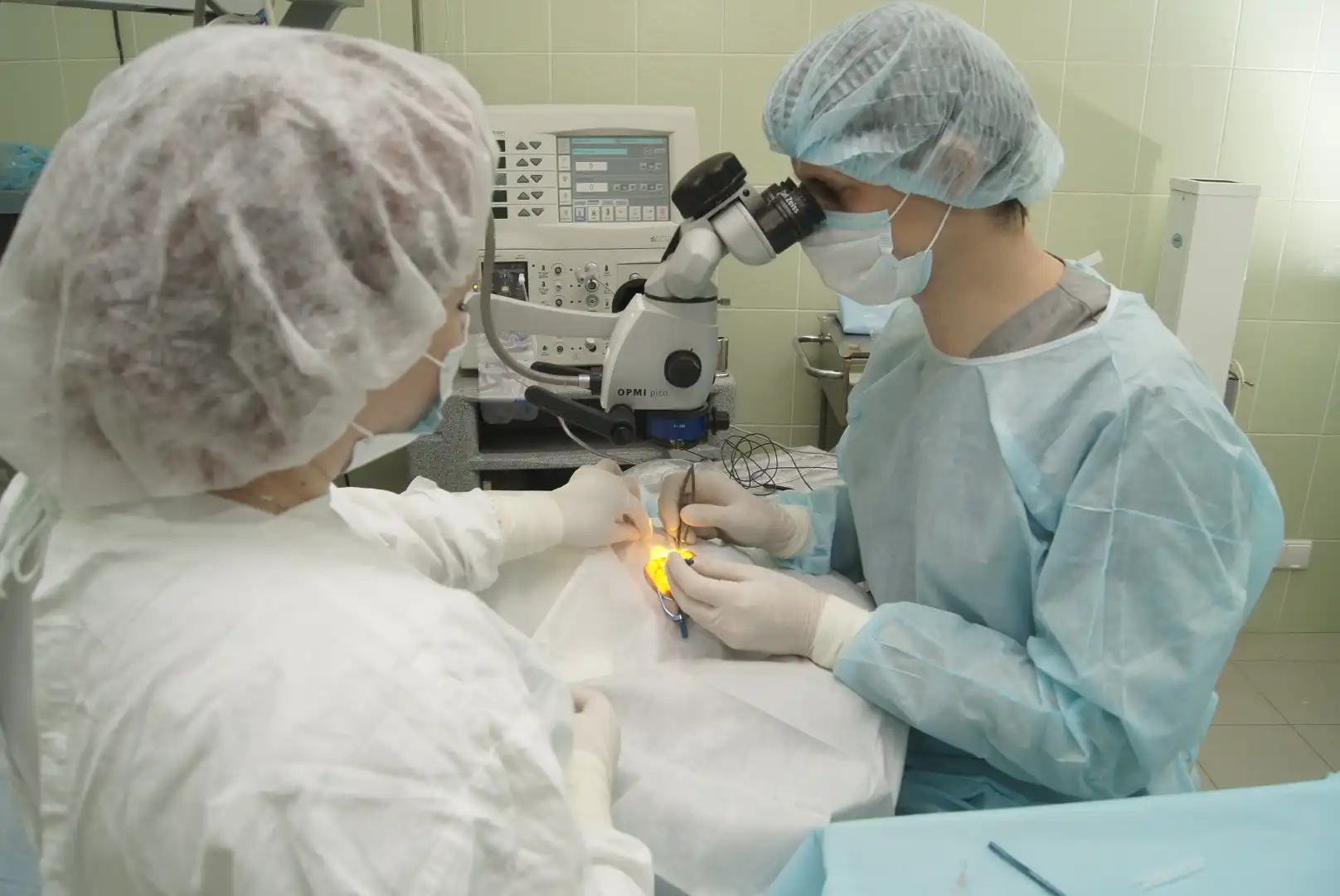 В офтальмологическом отделении свои особенности: все операции выполняются под большим увеличением при помощи микроскопа и для освещения используют яркий свет.