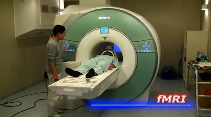 Функциональная магнитно-резонансная томография (fMRI) позволяет отслеживать рисунок активности нейронов в разных районах мозга благодаря измерению кровотока через эти участки. На снимке - аппарат, фиксирующий эту картину (кадр Boston University).