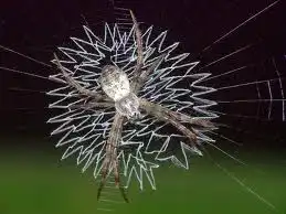 них более тонкие «спицы» и только после этого опутывает оставшееся посередине пространство почти незаметными, самыми клейкими и опасными ниточками-спиральками, которые и служат капканом для насекомых.