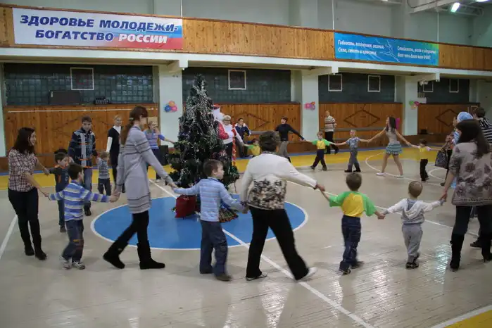 Спонсорами праздника выступили детский магазин "Малыш" и торговый дом "БИК". С детьми были проведены спортивные эстафеты, они бегали, прыгали, бросали мячи и водили хороводы с Дедом Морозом и Снегурочкой. Посреди большого спортивного зала, вся в мишуре, стояла наряженная новогодняя ёлка. Высокая девушка (член клуба "Ротаракт") в летнем платье, с прицепленными сзади блестящими розовыми крыльями, изображала бабочку, уже было впавшую в зимнюю спячку, но разбуженную новогодним весельем.