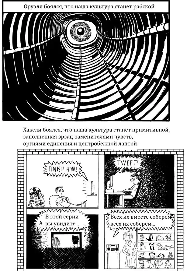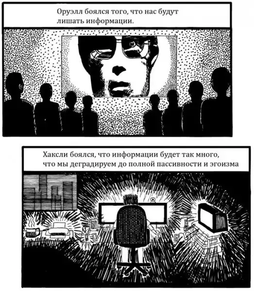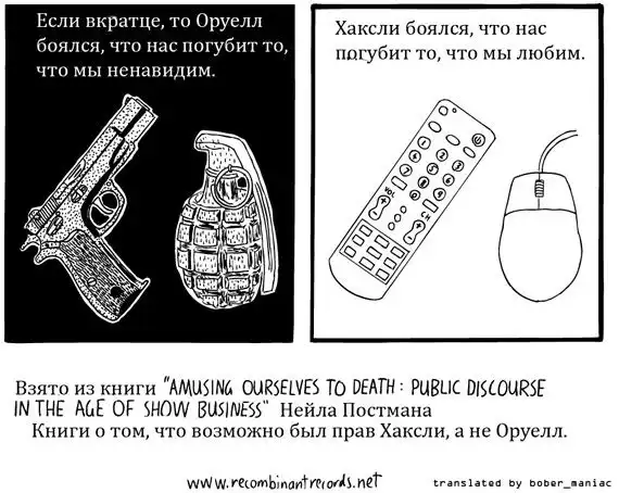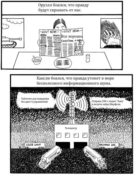 На примере различий между двумя наиболее значимыми антиутопическими романами прошлого века: «1984» Джорджа Оруэлла и «О дивный новый мир» Олдоса Хаксли.