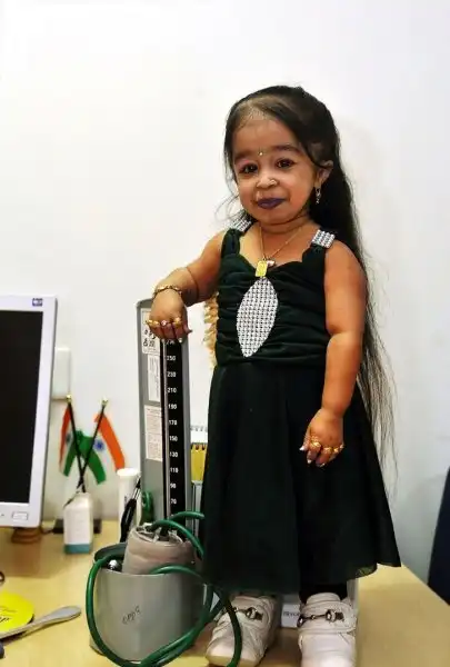 Джиоти Амге – 18-летняя студентка из Индии. Она известна, как самая маленькая женщина из ныне живущих в мире. Это официально зафиксировано в Книге рекордов Гиннеса. Рост рекордсменки составляет всего 62.8 см. В день вручения официального свидетельства Джиоти отмечала свой день рождения. Джиоти страдает заболеванием, известным еще с древних времен – ахондроплазией – системным поражением скелета. Одним из проявлений этой болезни является карликовость. Данное заболевание у человека не поддается лечению. Заболевание достаточно редкое – 1 на 50-100 тысяч человек. В сентябре 2009 года Джиоти Амге попала в Книгу рекордов Гиннеса, как самый маленький в мире подросток с ростом 61.95 см. За два года ее рост увеличился всего на 0.85 см. Сейчас рост Джиоти меньше, чем у двухлетнего ребенка. Джиоти Амге смогла перерасти самую маленькую женщину в истории. Полин Мастерс (1876—1895) проживала в Нидерландах, ее рост был всего 61 см.