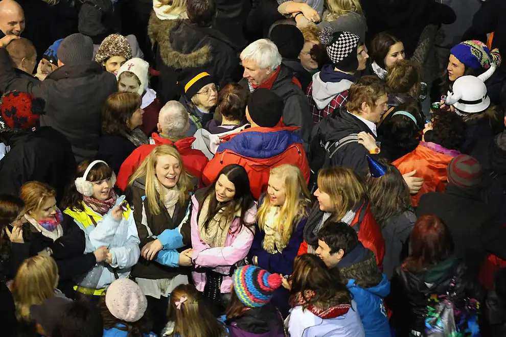 20. Жители Эдинбурга вышли на улицу Принцесс, чтобы отпраздновать Новый год. Традиционную новогоднюю песню «Aung Lang Syne» написал шотландский поэт Роберт Бернс в 1788 году, это ода старой дружбе. Компании друзей часто становятся в круг, берутся за руки и поют эту песню, а в начале последнего куплета они скрещивают руки и сближаются в центре круга. (Jeff J Mitchell / Getty Images)