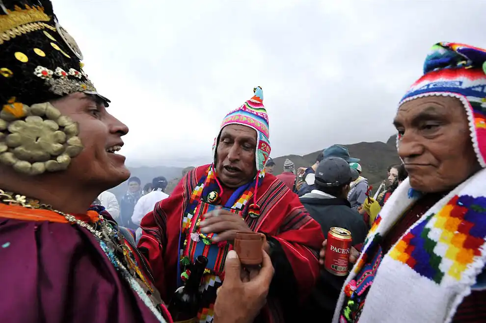 19. Один шаман кечуа и двое их племени аймара празднуют Новый год в Самаипате, Боливия. Аймарский Новый год – это праздник зимнего солнцестояния, и коренные жители просят в этот день хороший урожай в предстоящем сезоне. (Aizar Raldes / AFP - Getty Images)