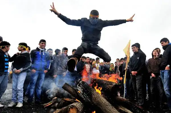 17. Турецкие курды прыгают через огонь во время праздника Навруз в Стамбуле. Навруз, что означает «новый день», отмечает первый день весны и считается Персидским новым годом. Его также отмечают в Иране, Афганистане, Азербайджане, Албании, Бахрейне, Армении, Грузии, Туркменистане, Таджикистане, Узбекистане, Киргизии и Казахстане, а также в некоторых поселениях иранцев и турков в Сирии, Ливане, Пакистане, Индии, северо-западном Китае, на Кавказе, в Крыму и на Балканах. (Mustafa Ozer / AFP - Getty Images)