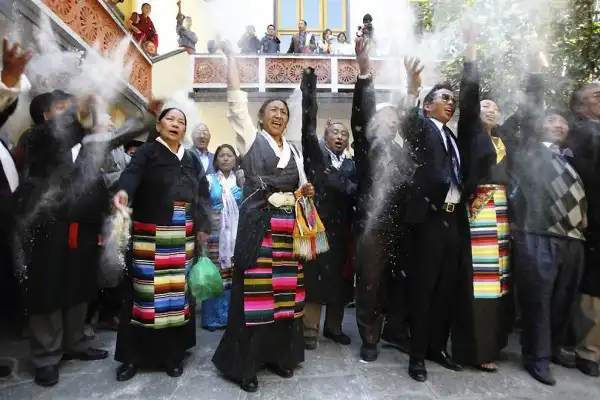 11. Тибетцы празднуют Лосар, Тибетский Новый год, в монастыре в Катманду, Непал. Традиция празднования Лосара произошла еще в до-буддистский период в Тибете, где тогда практиковали религию бон. Духовную церемонию проводили каждую зиму, люди приносили благовония, чтобы ублажить духов, божеств и защитников. Обычно Лосар выпадает на те же даты, что и китайский Новый год и отмечается 15 дней. (Navesh Chitrakar / Reuters)