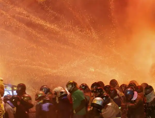 5. Люди стоят под фейерверками во время фестиваля Яншуй в рамках Китайского фестиваля фонариков. Местные жители считают, что если выстрелить петардами и фейерверками в толпу людей, злые духи уйдут – эта традиция переросла в настоящую туристическую достопримечательность. Фестиваль фонариков отмечают на 15-ый день Нового года по лунному календарю. (Reuters)