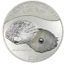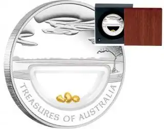 Австралия, 2006 г., серебряная монета с капсулой, внутри которой находятся миниатюрные копии шести монет, которые были платёжным средством до введения десятичной денежной системы в Австралии.