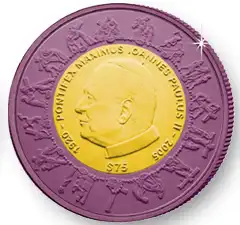 Продолжая эстафету поминовения Иоанна Павла II, правительство Либерии выпустило весьма необычную монету. Монета полностью черного цвета, за исключением золотого барельефа Папы.