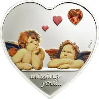 Монета "Скучаю по тебе". Серебро, эмаль, кристалл Сваровски.
