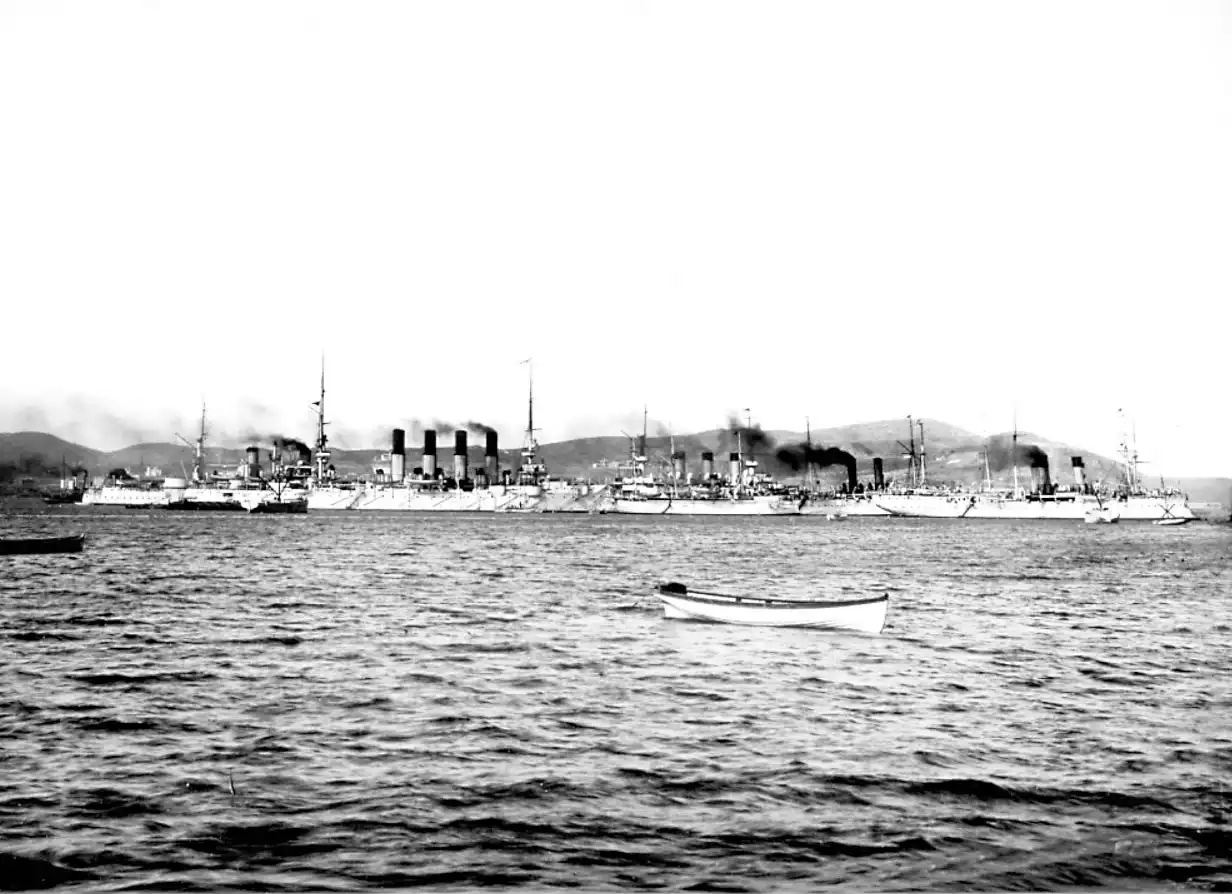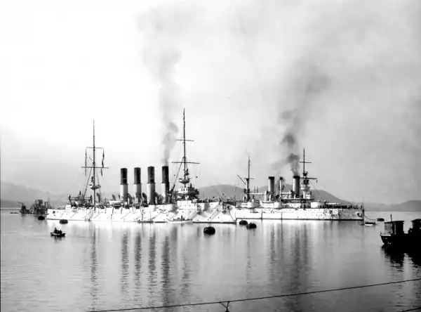 Прибытие во Владивосток бывших русских кораблей. Крейсер 'Варяг', 'Полтава', 'Пересвет'.