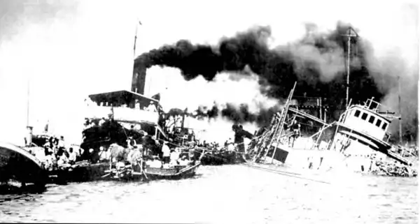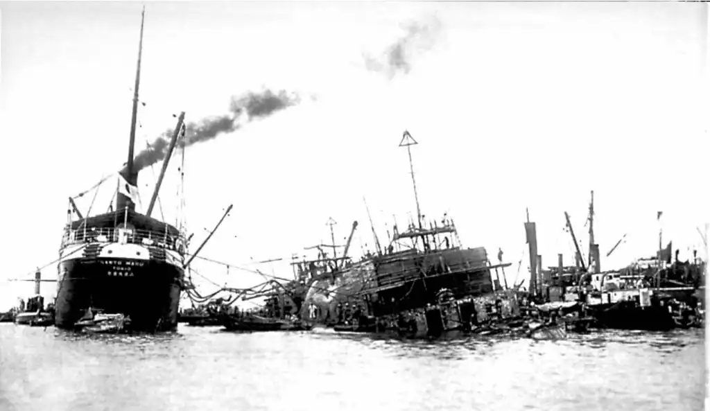 Крейсер 'Варяг' после боя в Чемульпо, 27 января 1904 г.