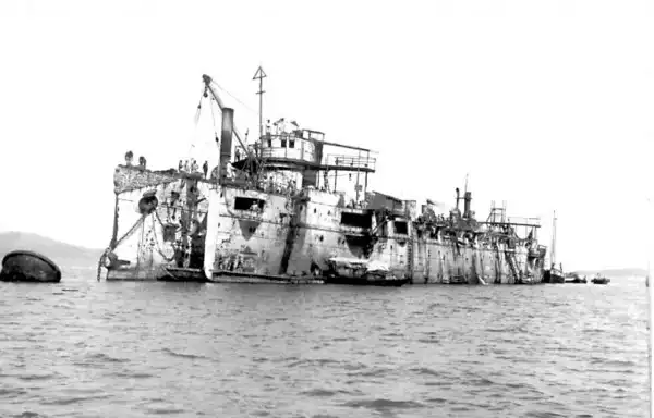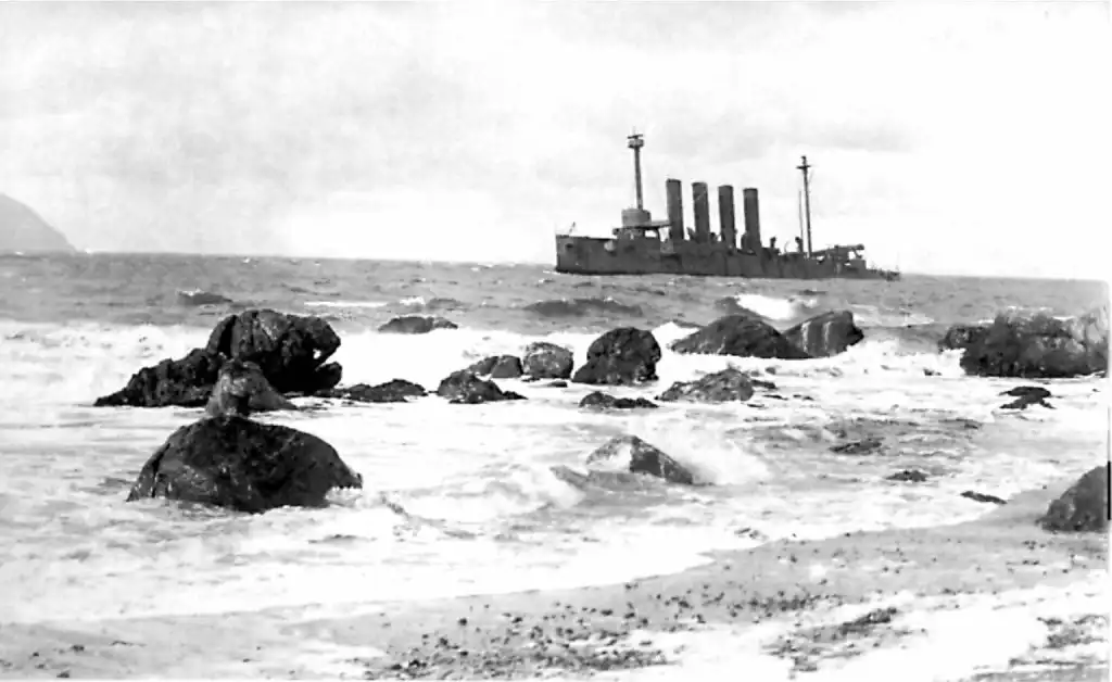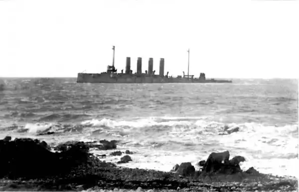 Крейсер 'Варяг' после посадки на камни близ посёлка Ленделфут в Шотландии, 1920 г.
