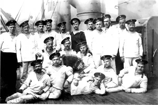 Группа машинной команды 'Варяга' во главе с младшим инженер-механиком К.Р. Курилло.