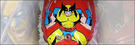 Надувной молоток с изображением Росомахи, еще одного супергероя из комиксов. При ударе издает писк, ну вы знаете. Все хорошо, вот только неужели нельзя было найти другое место для надувного клапана?