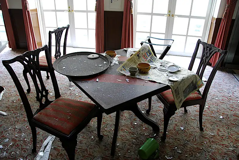 Как только принимается решение о банкротстве или закрытии того или иного объекта - он так и бросается со всем своим содержимым, земля дорогая, налоги очень высоки и если место не бойкое, то до смены владельцев может пройти ума времени. Иногда такая участь постигает больницы и школы в раонах, где сильно сократилось население из-за оттока в города.