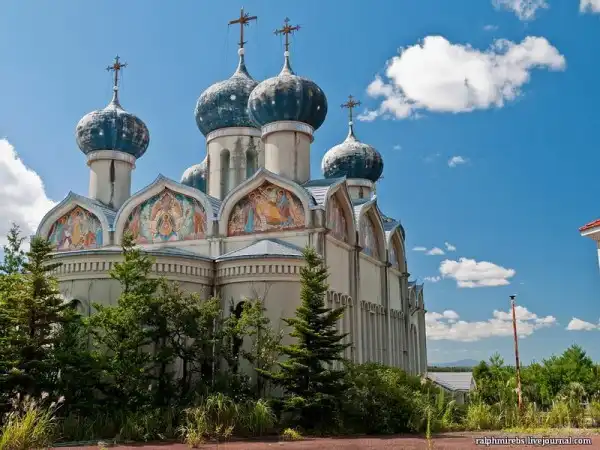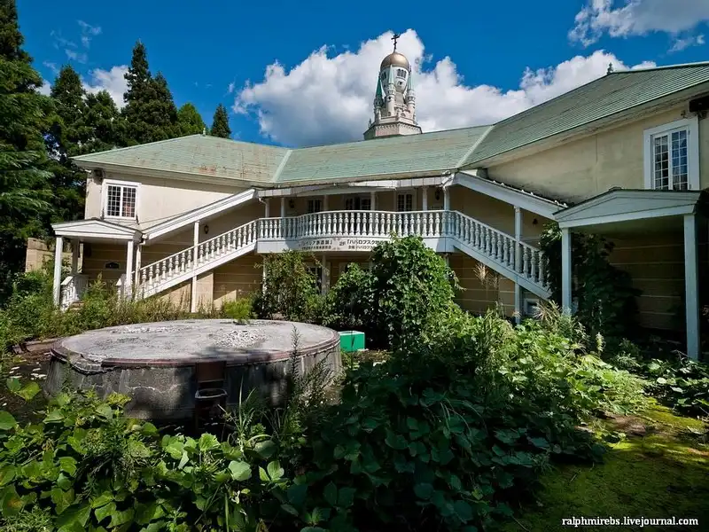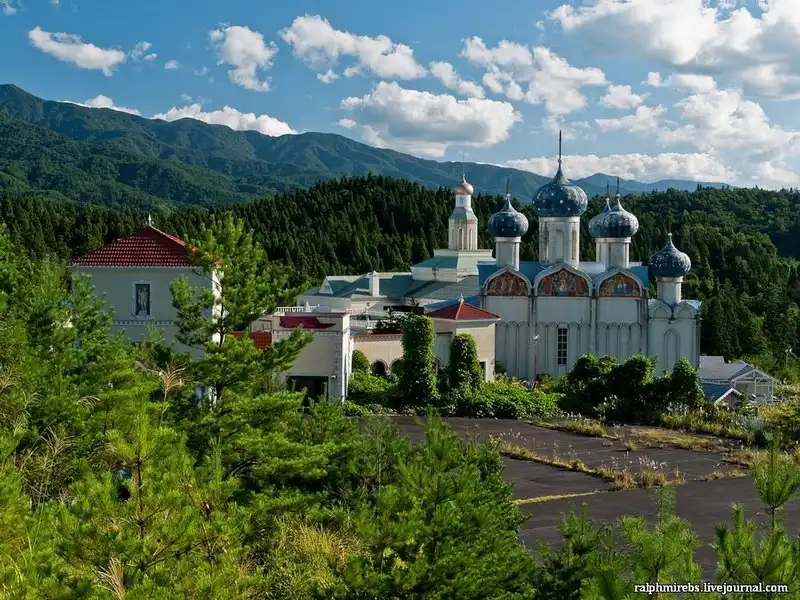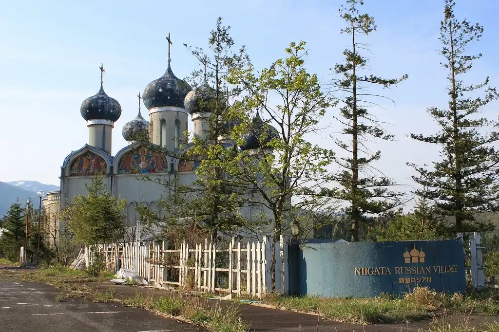 Один японский блогер очень любит разыскивать такие брошенные объекты и аккуратно, ничего не трогая, фотографировать эти призраки прошлого. Обычно это заброшенные отели, больницы, школы или клубы для пачинко. Однако эта его добыча ну прям очень впечатлила %)) Нашел он на сей раз целую заброшенную русскую деревню - Niigata Russian Village, на въезде в которую можно полюбоваться на копию Суздалького кафедрального собора у подножия горы Gozu.