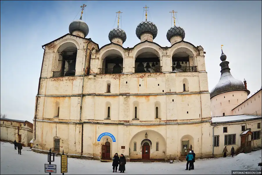 На звоннице – 15 колоколов, самый большой из которых весит 32 тонны. Однажды звуки этой звонницы были записаны и стали знамениты как «ростовские звоны».