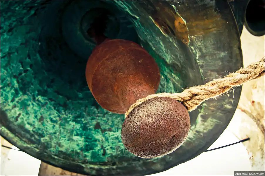 Разойтись на узкой лестнице не получится – ширина позволяет идти только одному человеку, а иногда и бочком. Столь узкие проходы – дань гигантскому весу колоколов, самый большой из которых весит 32 тонны.