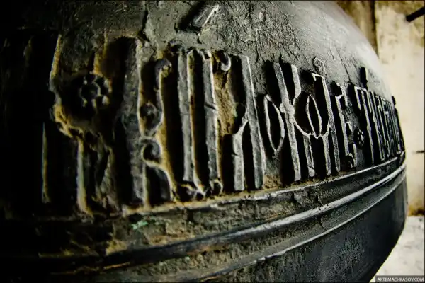 Около глав и краев проходит колоколов проходит рельефная надпись, выполненная вязью на церковно-славянском языке.