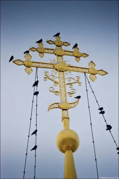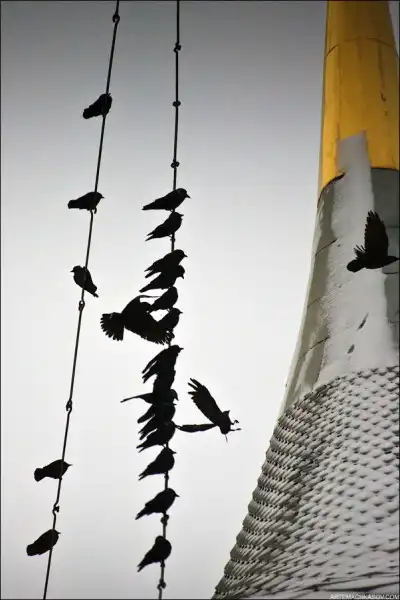 На крестах и тросах идущих к ним облюбовали себе место пернатые обитатели здешних мест.