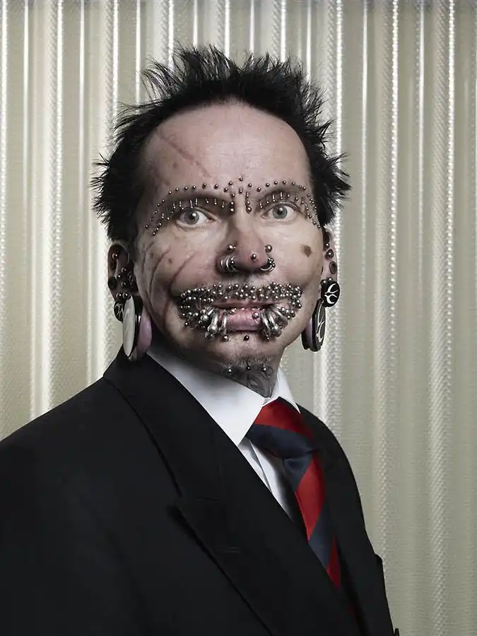 Рольф Буххольц проколот в 453 местах по всему телу. Буххольц, житель Дортмунда носит 94 украшения в губах или вокруг них, 25 в бровях, 8 в носу и 278 в области гениталий.