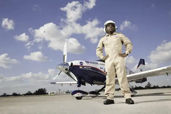 23-летний студент Мемориального университета Флориды Баррингтон Ирвинг не побоялся снегов, дождей и штормов, и совершил рекордный полет. Кроме того, он первый афроамериканец, побивший этот рекорд. Когда Баррингтон узнал, что никто не одолжит ему самолет для рекорда, он построил собственный Columbia 400 из деталей, пожертвованных ему авиастроительным заводом в Коламбии.