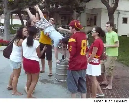 8. Университет Вашингтона и Ли тоже поддерживает процесс беготни в публичных местах обнаженным. Но гораздо чаще исполняется традиция "keg-stand" (название пива в канистрах с маленьким краником-шлангом для разлива). Человека поднимают на руки в горизонтальное положение, и он пьет под счет нескончаемый поток жидкости. По рассказам очевидцев, людей хватает на 50-60 секунд.