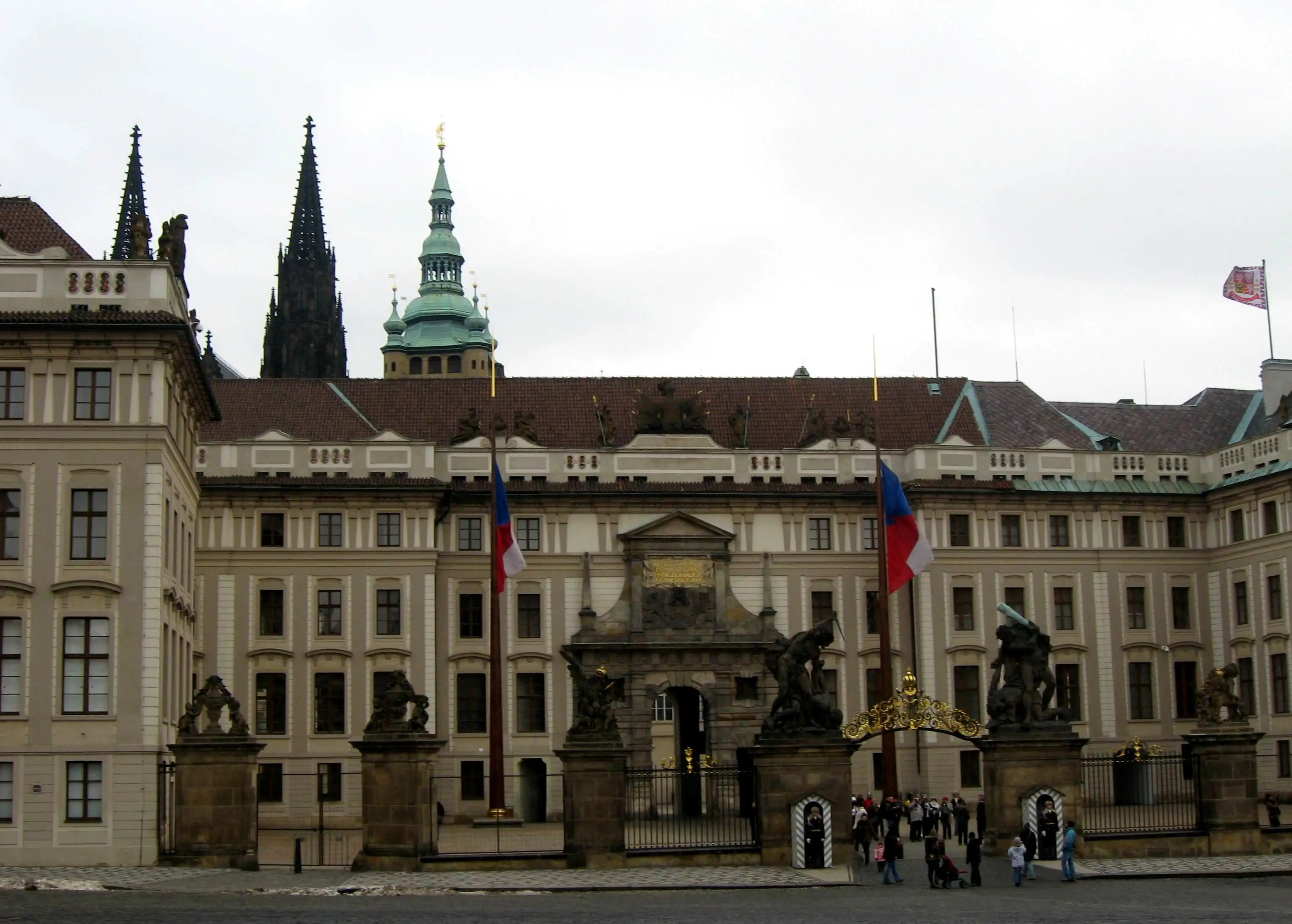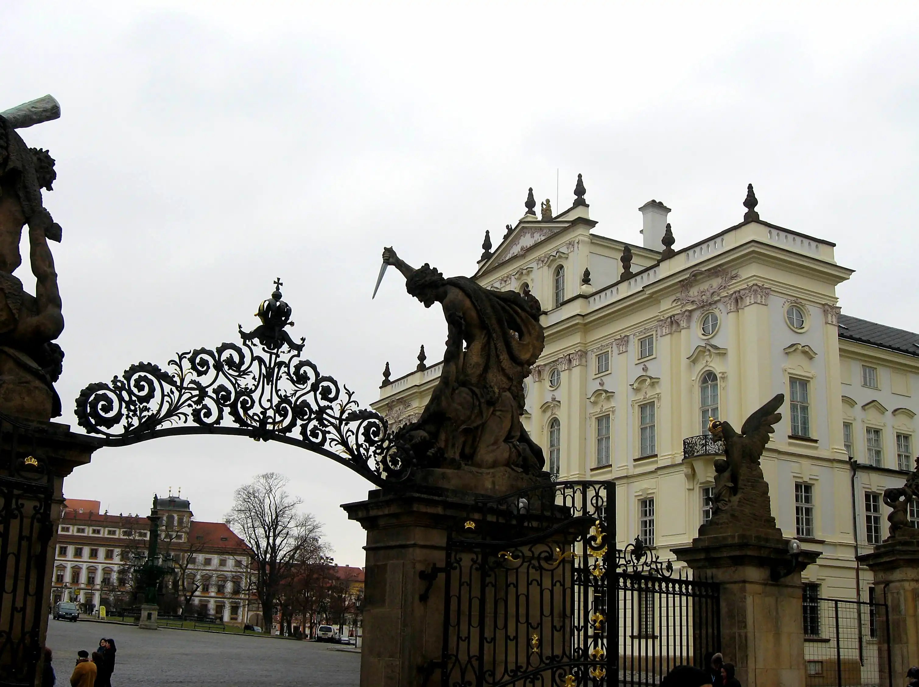 Шварценбергский дом (дворец). Наш гид рассказывала такую легенду, что, дескать, аристократ Шварценберг заказал роскошный дом одному архитектору, а тот возьми и заведи роман с его женушкой. Шварценберг выгнал любовника-архитектора, так и не заплатив, а тот пошутил, налепив на крышу дома рога