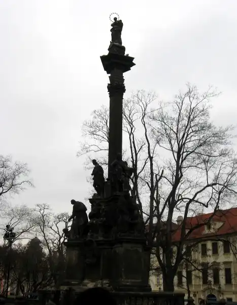 Это чумной столб. В Центральной Европе был распространён такой тип религиозного памятника. Подобные колонны воздвигались в знак благодарности за прекращение мора (Ц) по материалам Wikipedia