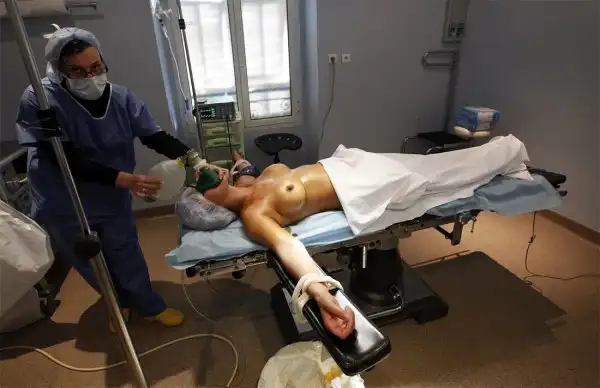 Хирург готовится к проведению операции по замене некачественных имплантатов.