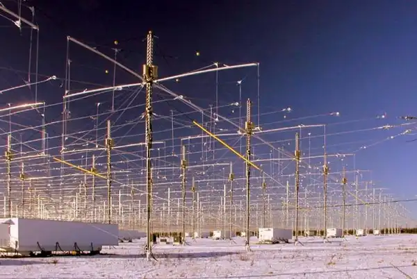 HAARP - расшифровывается как "проект высокочастотного активного исследования авроры".Антенное поле HAARP находится в месте с координатами 62.39о с.ш. и, 145.15о з.д.(это на Аляске) и представляет собой развёрнутую территории в 60 квадратных километров,громадную фазированную решетку антенн, фактически - сеть из трехсот шестидесяти антенн, которые вместе составляют исполинский излучатель сверхвысоких частот. Они посылают радиоволны в диапазоне частот 2,8-10 мегагерц, суммарной мощностью в 1,7 миллиарда ватт ( по другим данным 10 гигаватт), что превышает солнечное излучение в этом частотном диапазоне на 5-6 порядков.В Хаарп входят не только антенны, но и радар некогерентного (т.е. волны которые не образуют одну суммарную,а отличаются друг от друга в пространственном и временном отношении,что происходит,когда эти волны генерируются разными источниками) излучения с антенной двадцатиметрового диаметра, лазерные локаторы, магнитометры, мощные компьютеры для обработки сигналов и управления антенным полем.