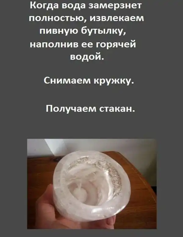 Ведь можно сделать стакан из льда своими руками, который с легкостью охладит напиток за считанные секунды.