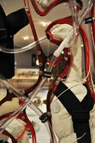 Перед помещением в «матрицу» цыпленку предлагается удалить участки коры головного мозга, чтобы лишить каких бы то ни было ощущений. Лапки тоже удаляются – для компактности. Питание и вода поступают через кровь, к птице также подключаются электроды для стимуляции мышечного роста.