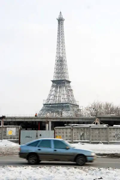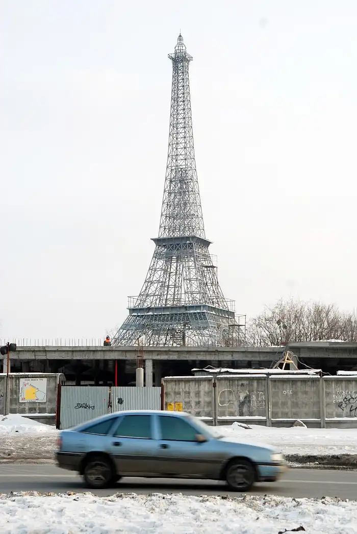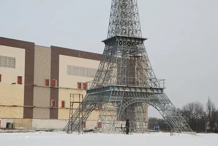 Символ Парижа уже стоит возле развлекательного центра «Шато Ледо». В нескольких десятках метров от перекрёстка улицы Академика Павлова и Салтовского Шоссе завершено строительство Эйфелевой башни.