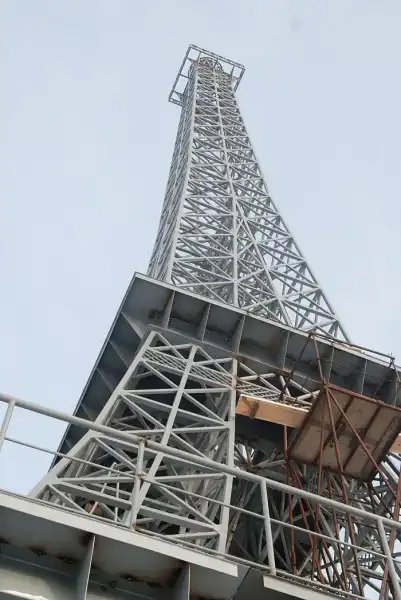 Высота конструкции — 35 метров. Это почти в десять раз меньше, чем высота оригинальной Эйфелевой башни в Париже — 300 метров.