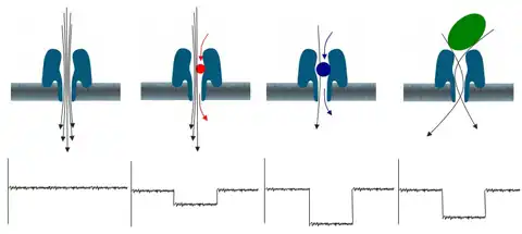 Специально разработанный фермент, добавляемый в раствор с пробой, подхватывает молекулу ДНК и последовательно продавливает её через пору, как через фильеру (смотрите рисунок вверху).