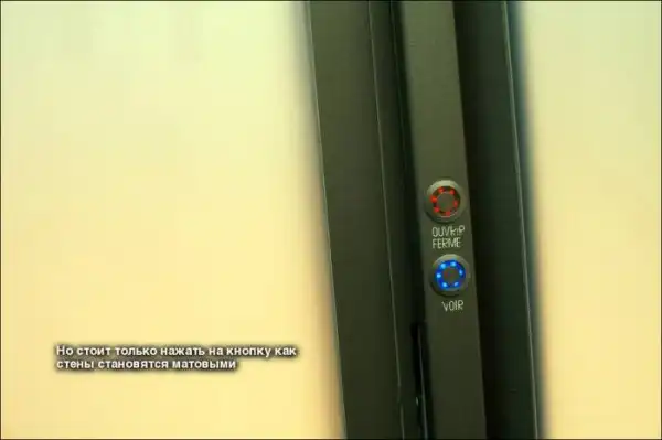 Все дело в том, что само "стекло" состоит из полимера, который меняет свою прозрачность при воздействии на него электрического тока. Стоит повернуть ручку, и стена сразу становится непрозрачной, хотя солнечный свет и проходит внутрь.