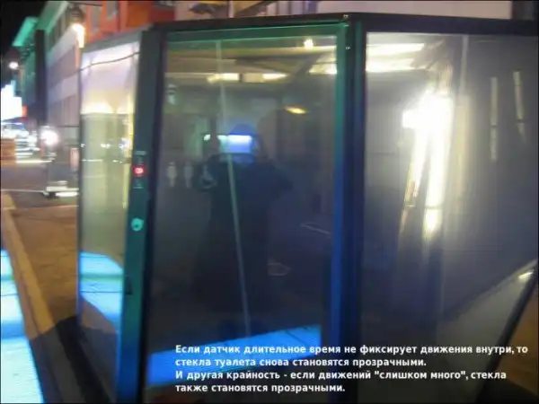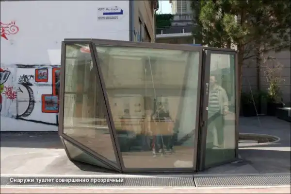 Кто бы мог подумать, что прозрачные туалеты могут быть такими популярными? Наверное, туалет с прозрачными стенами - это мечта каждого эксгибициониста. Однако не тут-то было: после установки подобных общественных туалетов в самых больших городах Швейцарии, они стали очень популярны. Правда, несмотря на то, что стены таких туалетов прозрачны, их можно легко сделать полностью непроницаемыми для посторонних взглядов.