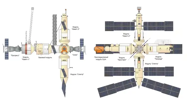 Это - ложь. У станции "Мир", как известно, было 7 модулей. Годы их вывода на орбиту: 1986 (базовый модуль), 1987, 1989, 1990, 1995, 1995, 1996. К 2001 г., соответственно, сроки их эксплуатации составляли 15, 14, 12, 11, 6, 6 и 5 лет.