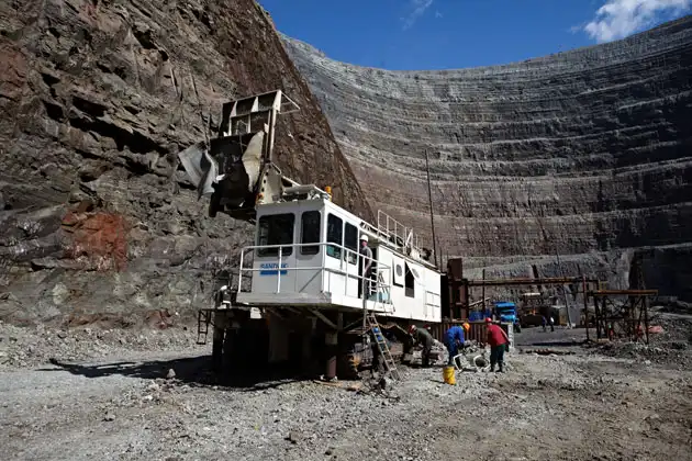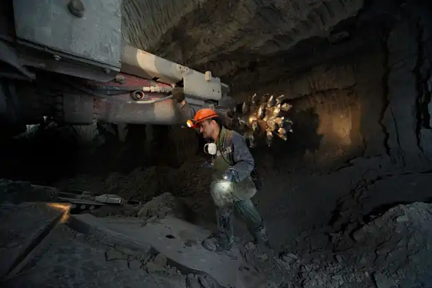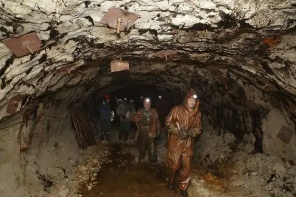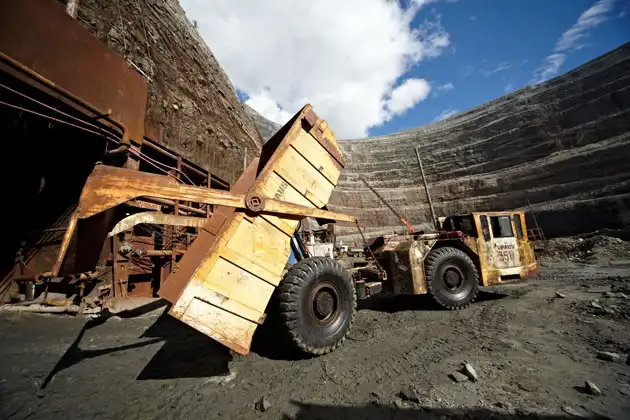 При слове «алмазные копи» невольно представляешь себе красивую картинку: пещера, в стенах которой драгоценные камни переливаются всеми цветами радуги. На самом деле алмазный рудник – не самое романтичное место на земле. Стены отнюдь не искрятся алмазным блеском, а глядя на руду, вообще сложно предположить, что в ней сокрыты будущие «лучшие друзья девушек». На фото – рабочие в одной из вентиляционных горизонтальных выработок будущего подземного рудника, глубина – 380 метров.