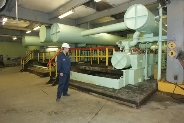 Как будет выглядеть подземная добыча на «Удачном» через 2–3 года? Для примера – фотография уже работающего рудника «Мир». Добыча алмазной руды под землей ведется в основном комбайновой проходкой (на фото). Также специалисты компании изучают и возможность применения традиционной для горнодобычи шпуровой отбойки – когда породу разрушают взрывчаткой, заложенной в пробуренные скважины. Далее схема та же: погрузочные машины забирают руду и вывозят на поверхность, откуда она попадет на обогатительную фабрику. Теперь на нее отправимся и мы.