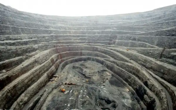 На фото – вид основного карьера Удачнинского горнообогатительного комбината – «Удачный». Горные работы на одноименном месторождении были начаты в 1971 г. и в течение последних 25 лет комбинат является ведущим предприятием алмазодобывающей отрасли России и одним из крупнейших открытых карьеров в мире. В 2010 г. на долю Удачнинского ГОКа пришлось 33,8% алмазодобычи в стоимостном выражении и 12,5% горных работ из общего объема по группе «Алроса».