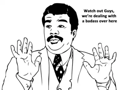 Комикс с изображением астрофизика Нила Деграсса Тайсона, поднимающего руки. Обычно данная фраза используется как насмешка над высокомерными и хвастливыми заявлениями людей в интернете.