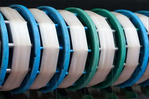И далее две нити объединяются в одну и уже готовая нить наматывается на катушки